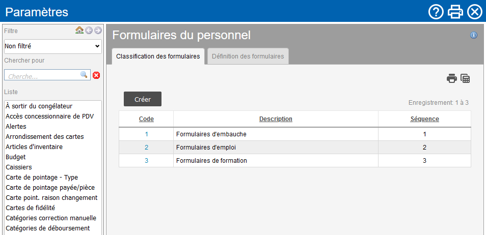 Les formulaires ne peuvent pas être enregistrés dans CLEARVIEW. Formulaires du personnel gère la liste de contrôle des documents et des formulaires qui apparaissent dans les fichiers électroniques d'employés.