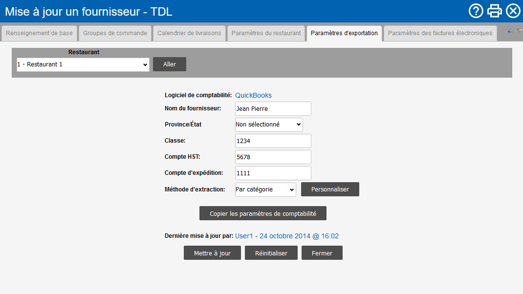 L’onglet Paramètres d'exportation vous permet d’ajouter la cartographie pour exporter les détails d’une facture dans votre Logiciel de comptabilité.