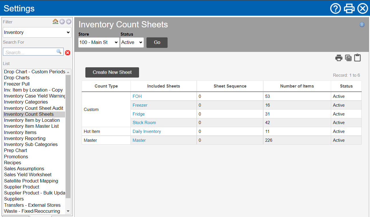 Inventory Count Sheets lets you manage the count sheet for each store in your organization. Here's where you can create custom count sheets that align with the physical layout of your store or for different periods, and hot item count sheets for that extra level of detail to key items.